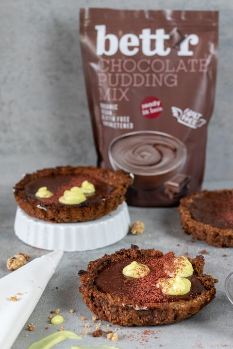 W tym przepisie użyliśmy nowego, bezglutenowego budyniu czekoladowego Bettr. To doskonały dodatek do niemal każdego deseru. Może nawet przywołać wspomnienia z dzieciństwa dotyczące ciepłych, kremowych budyniów robionych przez twoją mamę lub babcię. A najlepsza część? Budyń czekoladowy jest gotowy w zaledwie 1 minutę!