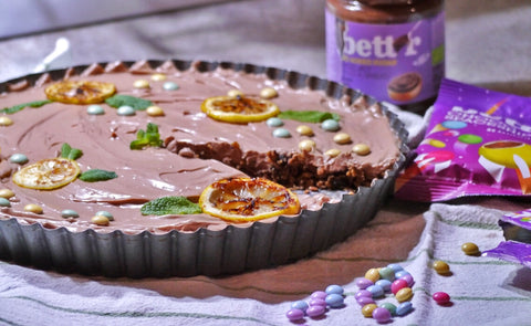 Do tego sernika używamy Bett'r Hazelnut-Cacao Spread – w 100% organicznego smarowidła bez dodatku cukru i oleju palmowego o bogatym aromacie orzechów laskowych i nieodpartym smaku czekolady.