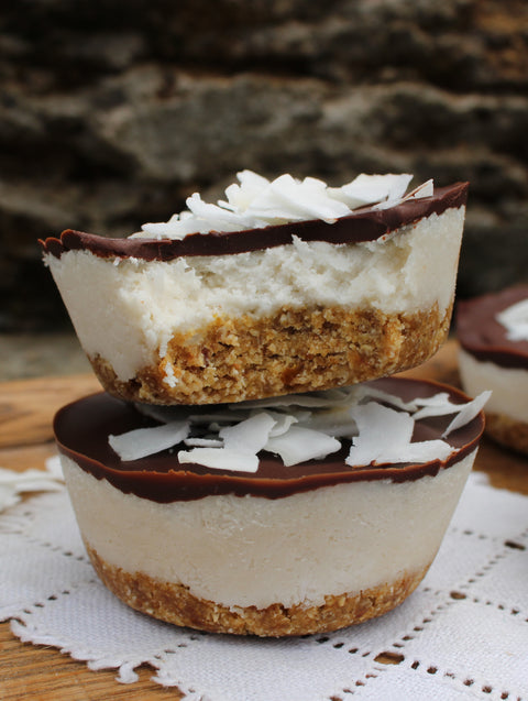 Jeśli jesteś fanem klasycznego połączenia smaków Bounty – kokosa i czekolady – pokochasz to zdrowe urozmaicenie! Te Wegańskie kubki Bounty nie zawierają rafinowanego cukru i są wykonane wyłącznie ze składników pochodzenia roślinnego. Są naturalnie słodzone daktylami, odrobiną syropu klonowego i posypane naszymi Bett'r choco drops, bez dodatku cukier.
