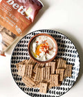 • Mąka pszenna pełnoziarnista – bogata w błonnik, zapewniająca zdrową, satysfakcjonującą chrupkość.