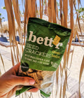 Lubisz chrupiące, aromatyczne przekąski? Nasze Bett’r BIO Krakersy z zielonymi ziołami to idealny wybór do chrupania, maczania lub łączenia z ulubionymi pastami do smarowania!